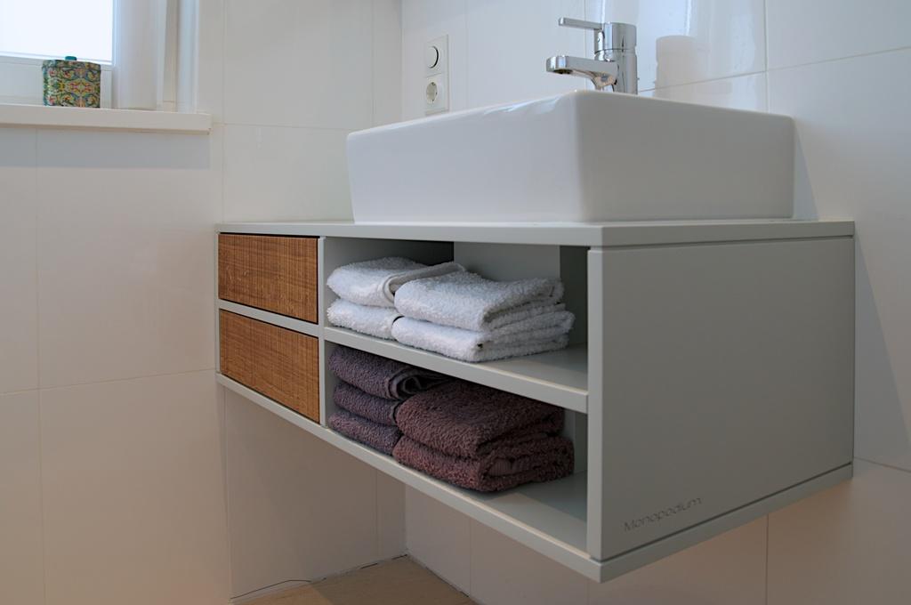 Waschtischunterschrank, Lack papyrus weiß, Schubkästen fingergezinkt Eiche massiv